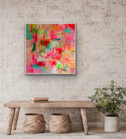It begins slowly. Thoughts come and go and little by little they begin to form. Into layers, lines, circles, colours and shapes. Everything that moves me flows into them. Finally it appears in front of me, a new picture, a new creation that was never planned that way. Something special, something personal. A unique feeling of happiness and a special calm fulfills me. So long until it starts afresh.